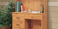 Student Desk - Three large storage drawers. Large work top surface. One pencil drawer. Brass finished drawer pulls. Pine finish. Sturdy engineered-wood product construction. Easy to follow step-by-step assembly instructions.Chair/kneehole dimensions: Width: 19 Depth: 14 Height: 22 5/16Can be outfitted with optional hutch CI497-740 (sold Dimensions: 35 7/16 inches W x 29 inches H x 15 9/16 inches D. Weight: 67 lbs.